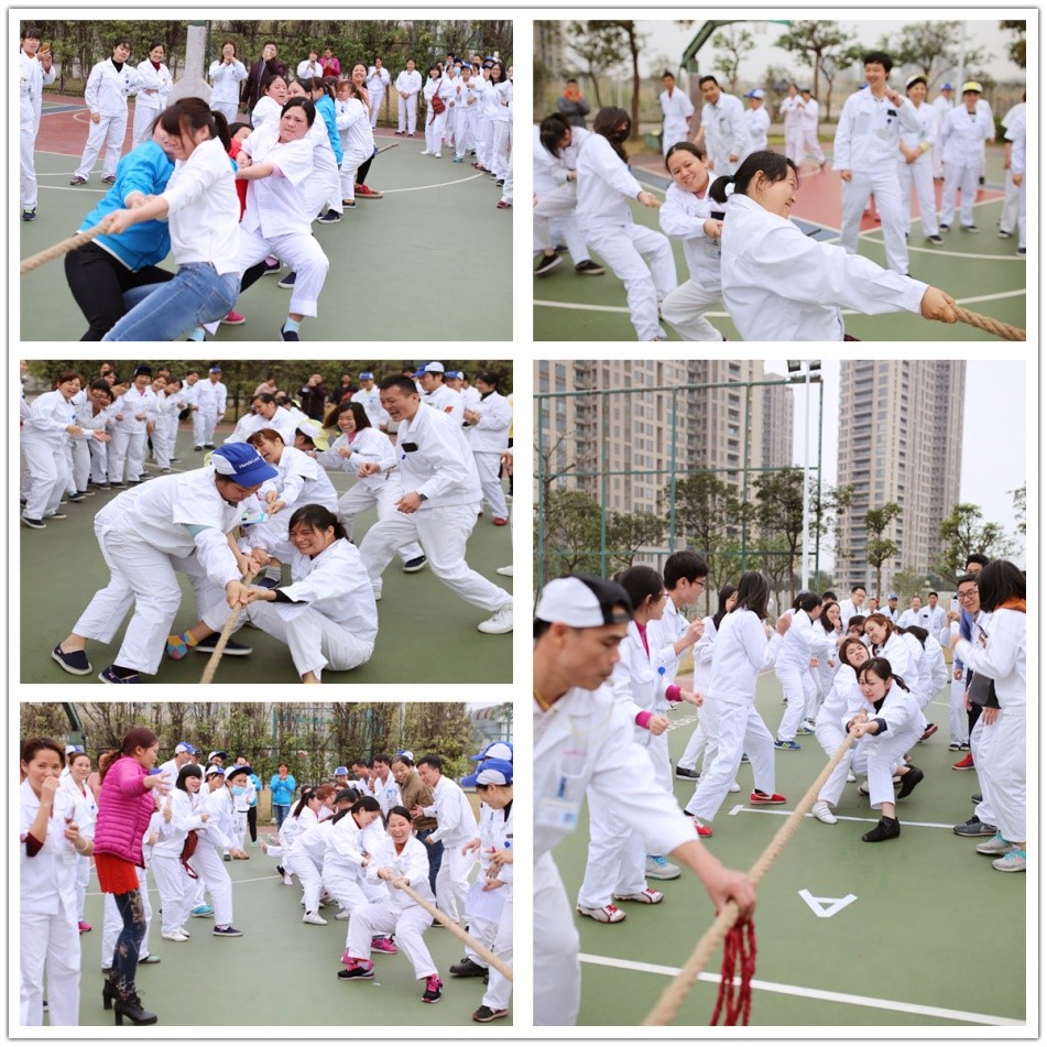一根麻繩,承載著的已不僅是兩邊各11位大力士們對勝利的期待,更牽動著助陣的眾多參謀團的心,“加油!加油!”一聲聲富有節(jié)奏的號子,響徹了整個籃球場,這里是首屆 “三八婦女節(jié)拔河比賽”現(xiàn)場,整個籃球場被觀戰(zhàn)的同事們圍得水泄不通,勇士們一個個漲紅了臉,拼命地拔拉著麻繩,勝利的小紅旗在大家的合力下時左時右地移動著,這是一場女生之間的角逐,更是一場部門間的團隊協(xié)作。